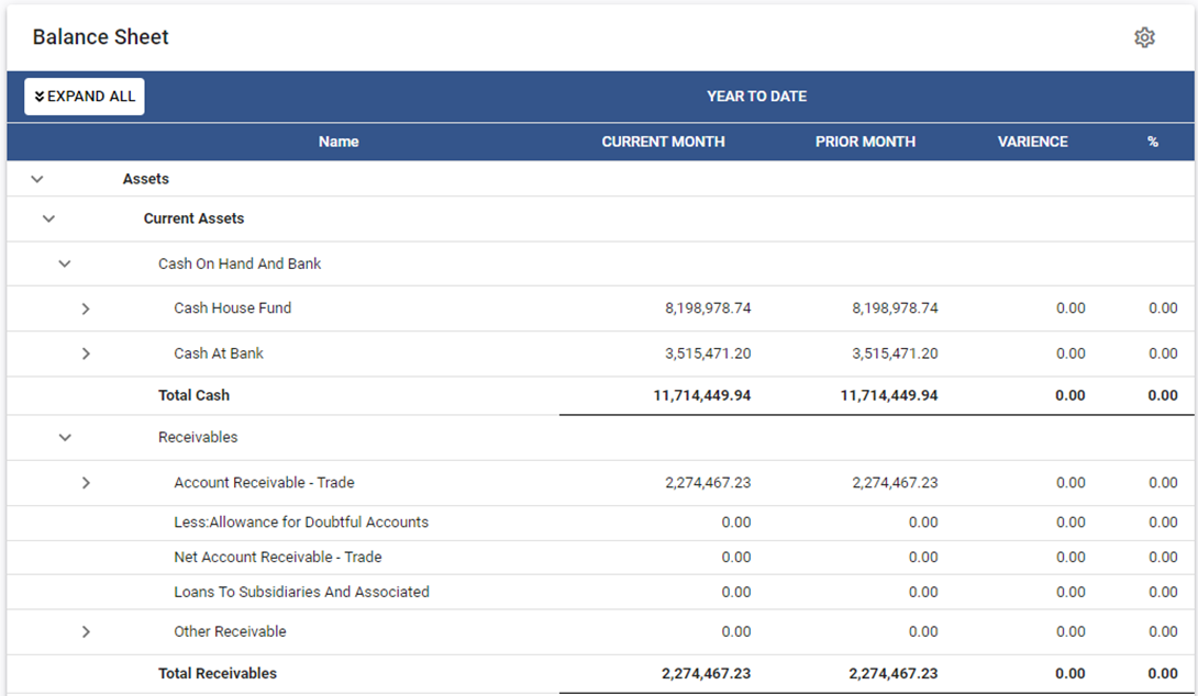 - Note : Built in Financial report with standard format. It require account code mapping before use.