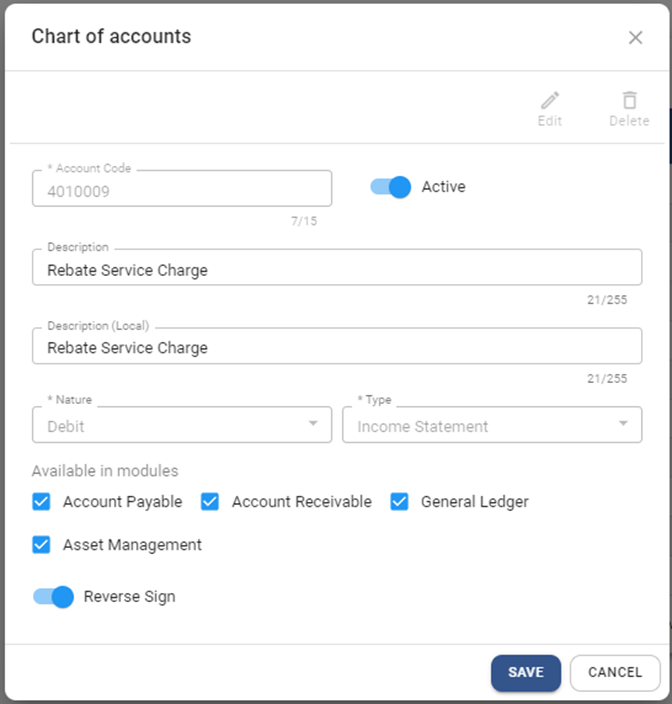 - Note : This features will affect to presenting the amount in Built in financial report only. It will reverse the sign of amount.
