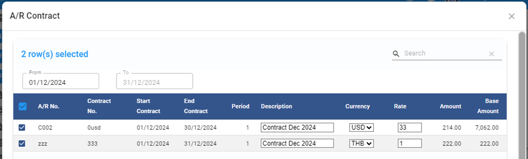 Account Receivable - Apply Contract - Add features to revise invoice description and currency rate before apply invoice