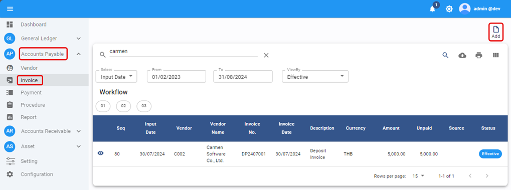 āļĢāļ°āļāļāļāļ°āđāļŠāļāļāļŦāļāđāļē AP Invoice