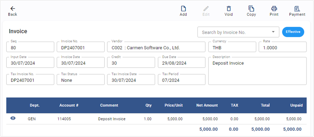 1.4. āļāļąāļāļāļķāļāļāđāļāļĄāļđāļĨāļāļēāļĄāļāļąāđāļāļāļāļāļāļāļ Invoice āļāļēāļĄāļāļāļāļī āđāļāļĒāļŠāļĢāđāļēāļ Invoice āļāļēāļĄāļāļģāļāļ§āļāđāļāļīāļ Deposit āļāļĩāđāļāđāļāļāļāđāļēāļĒ