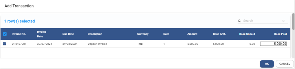 2.5. āđāļĨāļ·āļāļ Deposit Invoice āļāļĩāđāļŠāļĢāđāļēāļāļāļķāđāļ āđāļĨāļ°āļāļģāļĄāļēāļāļģāļĢāļ°