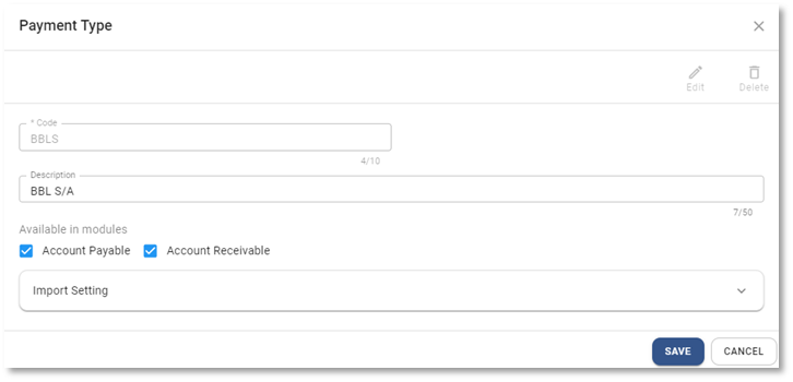 ขั้นตอนการสร้างประเภทการชำระเงิน/รับชำระเงิน (Payment Type)
