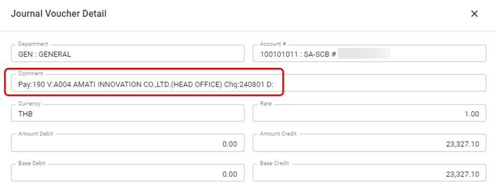 āļĢāļēāļĒāļĨāļ°āđāļāļĩāļĒāļāļāļģāļāļāļīāļāļēāļĒāļāļāļāļāđāļāļĄāļđāļĨāļāļēāļ Payment (Journal Voucher Detail)