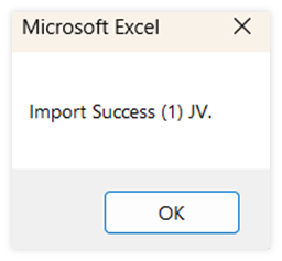 2.4. āđāļĄāļ·āđāļ Click Import to GL āđāļĢāļĩāļĒāļāļĢāđāļāļĒāđāļĨāđāļ§āļĢāļ°āļāļāļāļ°āđāļŠāļāļ Pop up Message āđāļāđāļāđāļŦāđāļāļĢāļēāļāļ§āđāļē âImport Successâ āđāļĨāļ°āļāļ°āđāļŠāļāļāđāļĨāļāļāļĩāđ JV āđāļāļāđāļāļ JV No.