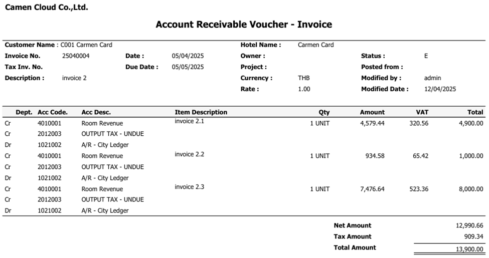 - Note: We have updated the "Account Receivable Voucher - Invoice" form to show account codes more clearly. This makes it much easier for you to check and verify your accounting information.