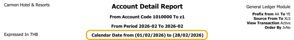 - Note: We have updated the Trial Balance and Account Detail reports to show the specific dates alongside each fiscal period. This helps you clearly see the date range for each period, which is very useful for businesses with fiscal years that cross over calendar years.
