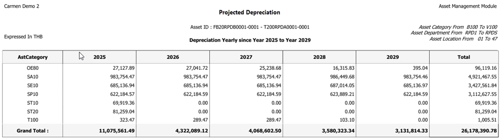 - Path: Asset > Report > Projected Depreciation