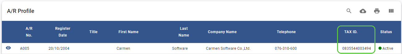 Account Receivable - AR Profile - Show Tax ID in AR profile list screen
