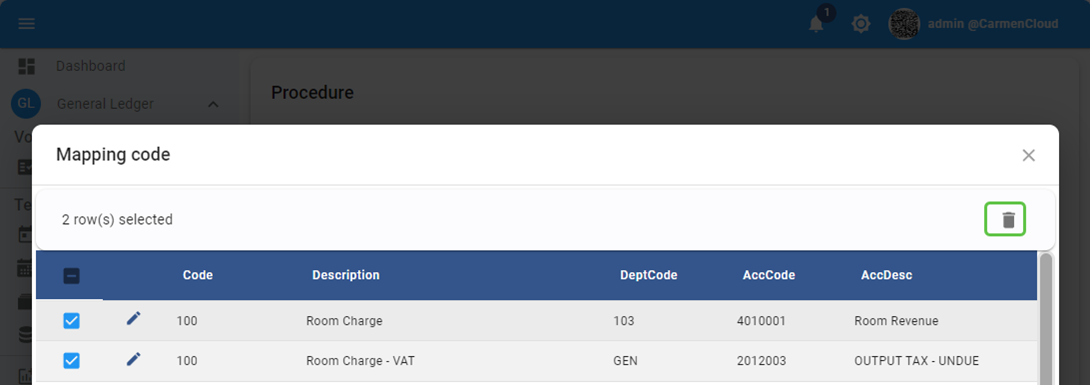 - From : General Ledger 🡪 Procedure 🡪 PMS Interface