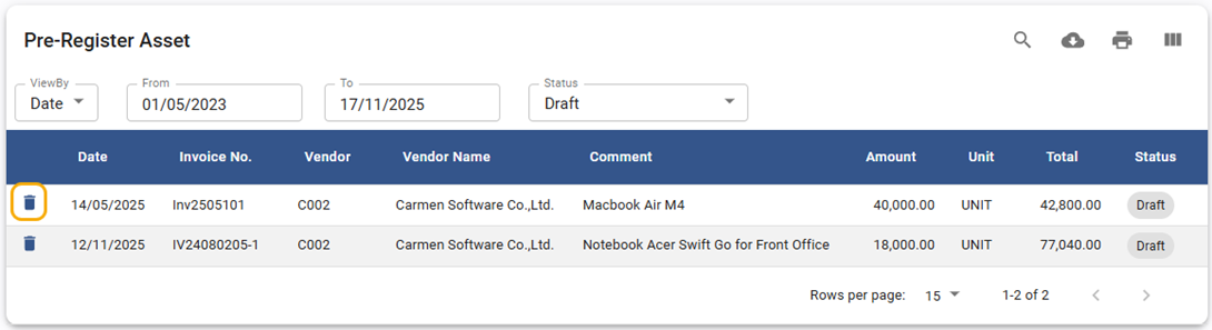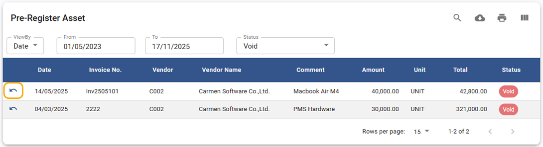- Note: Full control over your asset registration! You can now Void unused Pre-Register Assets and, in case of a mistake, Un-void them for maximum flexibility.