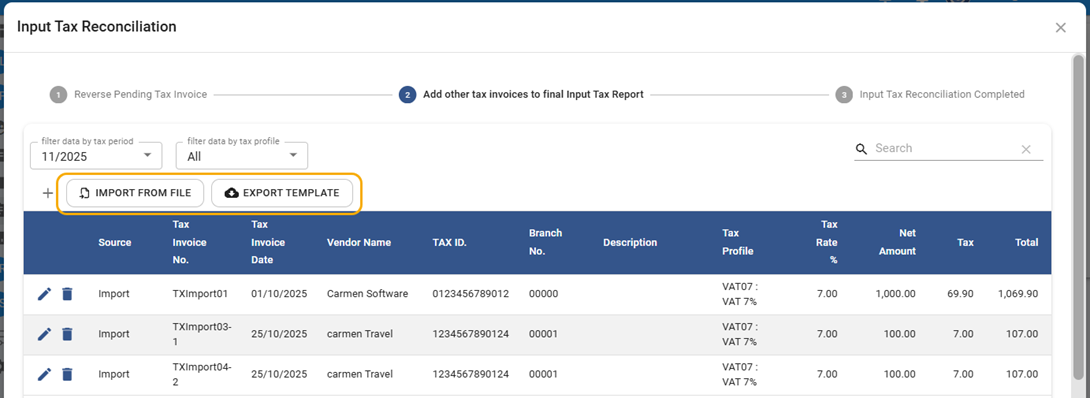 - Note: Streamline your reconciliation process! Easily prepare your Input Tax information using a dedicated Excel template and import it directly into the system.