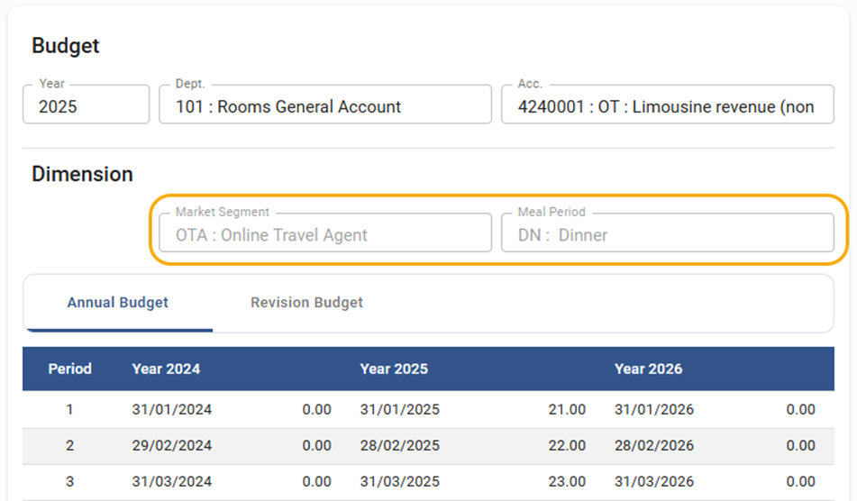 - Note: The Budget screen has an updated view to clearly display and facilitate analysis across multiple financial dimensions, offering deeper budgeting insights.