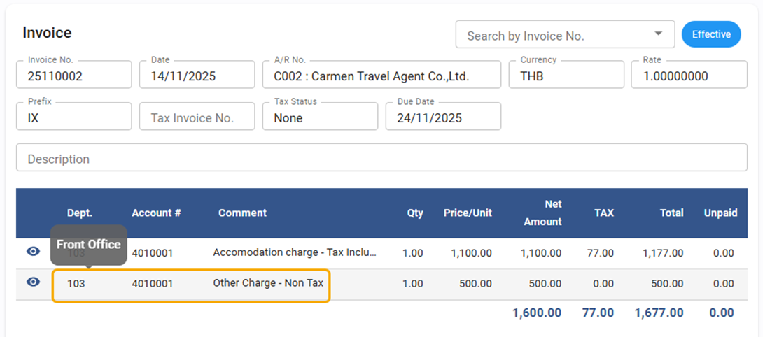 - Note: Get instant context! Hover over Department Code, Account Code, and Comment fields in the Invoice screen to view more comprehensive details without leaving your current view.