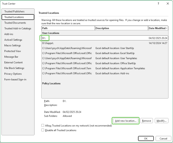 5.1.Trusted Location ใช้ในการกำหนดสถานที่ที่จะเก็บ file Workbook หรืองบการเงิน เพื่อให้ excel ไม่ block macro Carmen Add In หากเก็บ file เอาไว้ที่ location ที่ได้ตั้งค่า อาจจะทำให้ Macro ทำงานได้ไม่สมบูรณ์