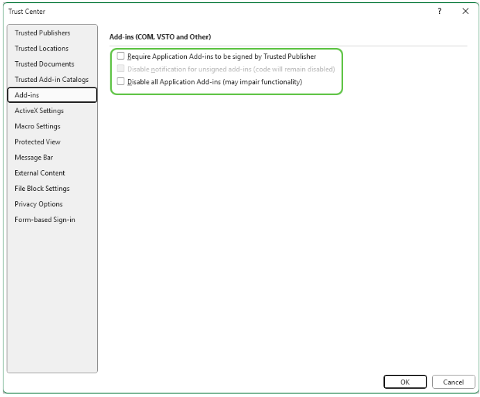 5.2.Add-Ins ตรวจสอบว่าได้เอา check box ออกทั้งหมด